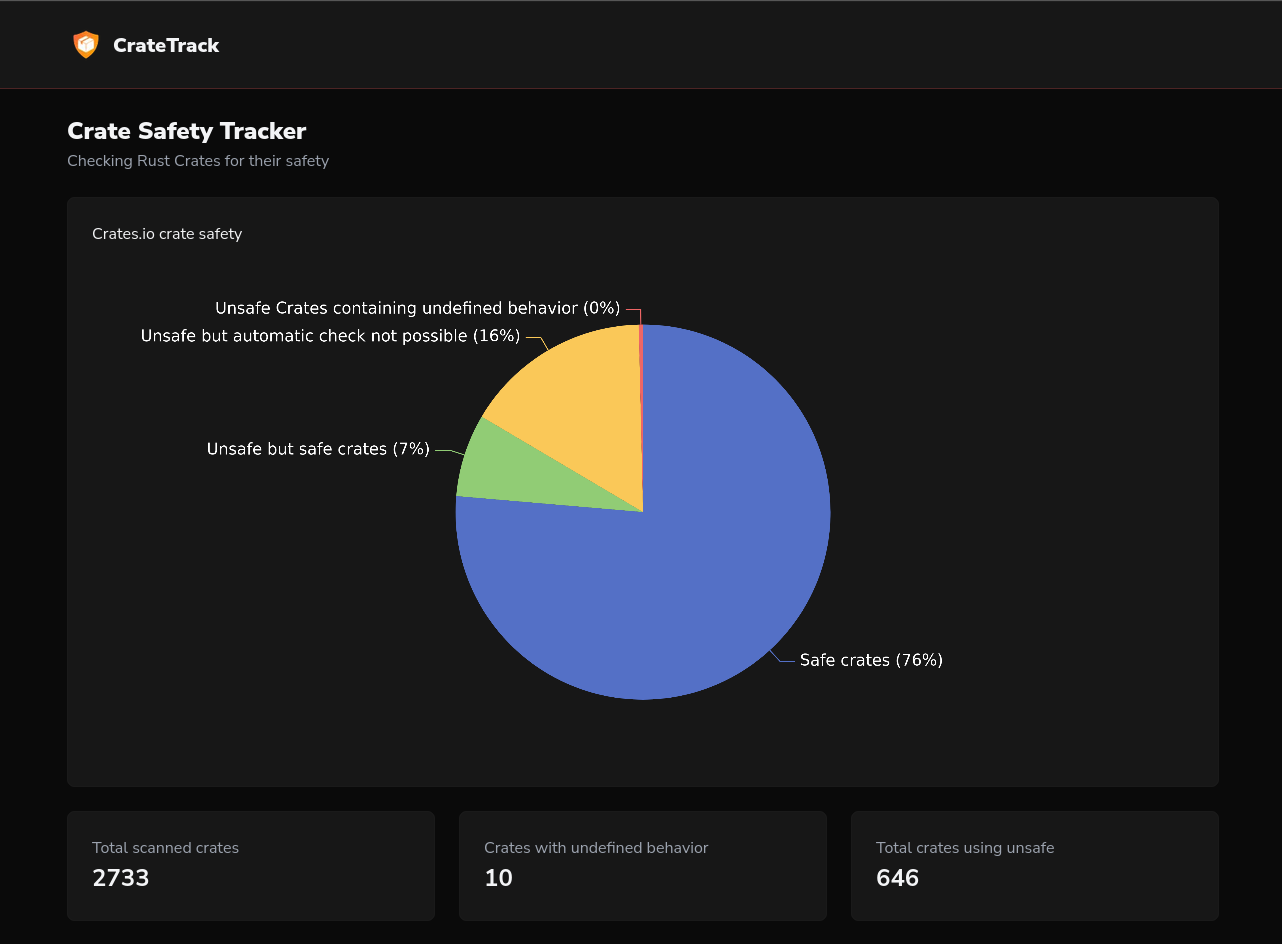 As a result, I am currently developing two applications: MemTrack, for tracking memory-related CVEs, and CrateTrack, which performs automated checks for undefined behavior in crates.io packages using Miri.